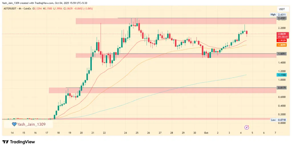 پس از سقوط قیمت به ۱/۴۹ دلار در اوایل اکتبر، آستر جهشی چشمگیر را رقم زد و تا سطح ۲/۲۷ دلار صعود کرد؛ افزایشی نزدیک به ۵۰ درصد در بازهای کوتاهمدت.