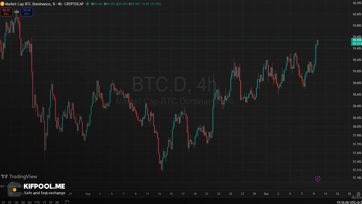 افزایش شاخص Bitcoin Dominance به بیش از ۵۹.۴٪ نشان میدهد معاملهگران در حال بازگشت سرمایه به سمت بیتکوین هستند تا ریسک خود را در شرایط پرنوسان کاهش دهند.