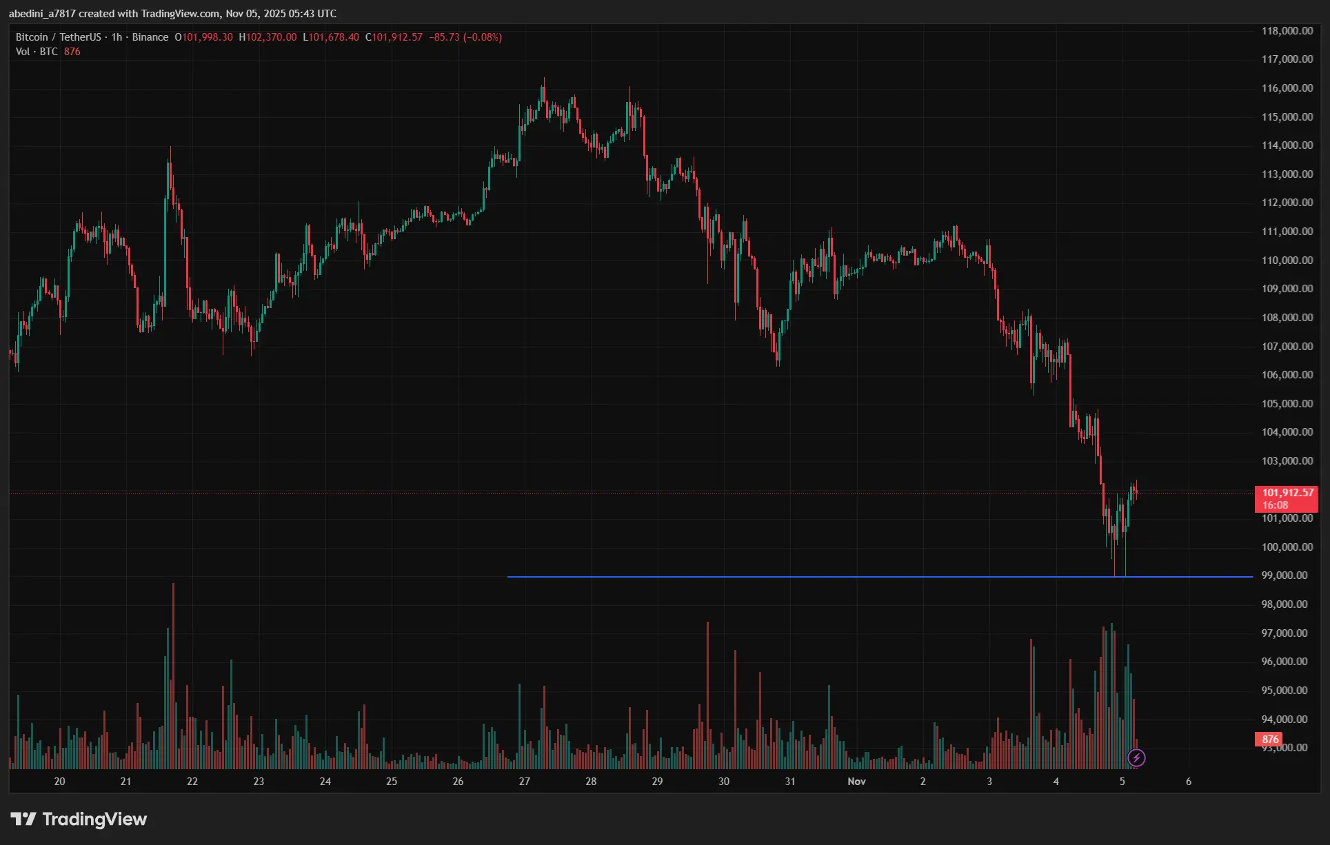 در روز سهشنبه، ۴ نوامبر، قیمت بیتکوین بار دیگر به زیر مرز روانی ۱۰۰ هزار دلار سقوط کرد و به پایینترین سطح خود از ماه ژوئن رسید. تحلیلگران این افت را نشانهای از خستگی بازار و کاهش انرژی خریداران توصیف کردهاند.