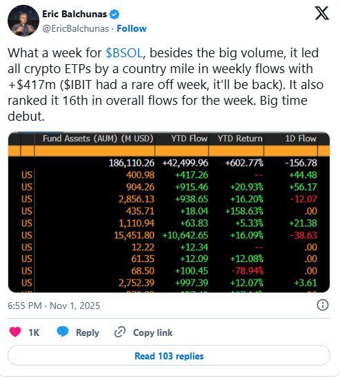 | ارزش ورودی به ETF BSOL | ۴۱۷ میلیون دلار | Bloomberg |