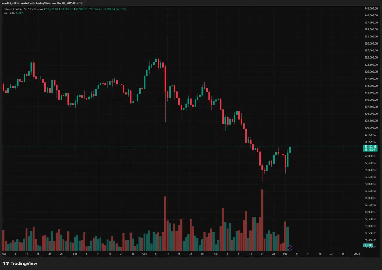 بر اساس دادههای تریدینگویو، بیتکوین بامداد چهارشنبه در صرافی Coinbase به اوج ۲۴ ساعته ۹۳٬۰۴۰ دلار رسید. این صعود باعث شد تمام ضررهای دو روز گذشته که ناشی از لیکویید شدن شدید در معاملات اهرمی عصر یکشنبه بود—اتفاقی که ۸ هزار دلار از قیمت این رمزارز را پاک کرد—جبران شود.