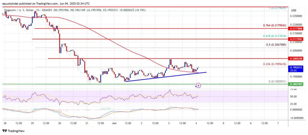 اولین مقاومت در مسیر صعودی دوجکوین در محدوده ۰.۲۰ دلار قرار دارد. مقاومت اصلی بعدی برای خریداران میتواند در سطح ۰.۲۰۶۰ دلار باشد که با سطح ۵۰٪ اصلاحی فیبوناچی از حرکت نزولی اخیر همراستا است.