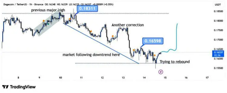 اگر دوجکوین نتواند با مومنتوم مناسب سطح ۰.۱۶۶ دلار را پس بگیرد، احتمال اصلاح بیشتر وجود دارد. در صورت تشدید این ریزش، حمایت بزرگ بعدی در محدوده ۰.۱۵ دلار قرار دارد؛ جایی که احتمالاً شاهد موجی از خرید خواهیم بود که میتواند یک رشد کوتاهمدت ایجاد کند.
