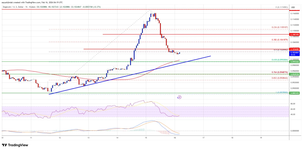 دوجکوین پس از ناکامی در عبور از ۰.۱۱۷۵ دلار، بخشی از رشد خود را از دست داد و هماکنون بالای ۰.۱۰ دلار معامله میشود. حمایتهای کلیدی ۰.۱۰ و ۰.۰۹۵۰ دلار زیر نظر هستند و فشار فروش همچنان ادامه دارد.