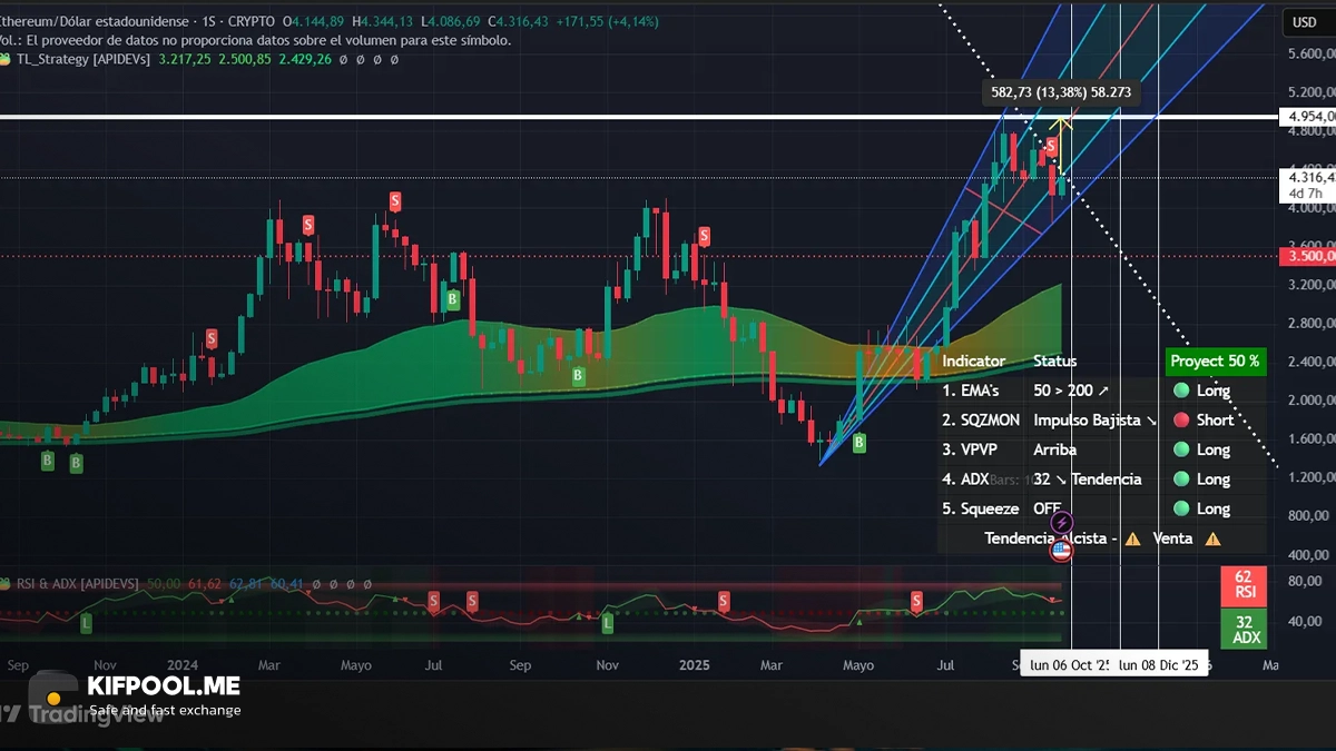 تحلیل فن فیبوناچی نشان میدهد اتریوم میتواند هر زمانی بین هفته آینده تا ماه دسامبر به اوج تاریخی جدید برسد؛ مشروط به اینکه مومنتوم فعلی ادامه یابد. در صورت شکست روند، احتمال افت به محدوده ۳۰۰۰ دلار هم وجود دارد که سرمایهگذاران صعودی را تحت فشار میگذارد.