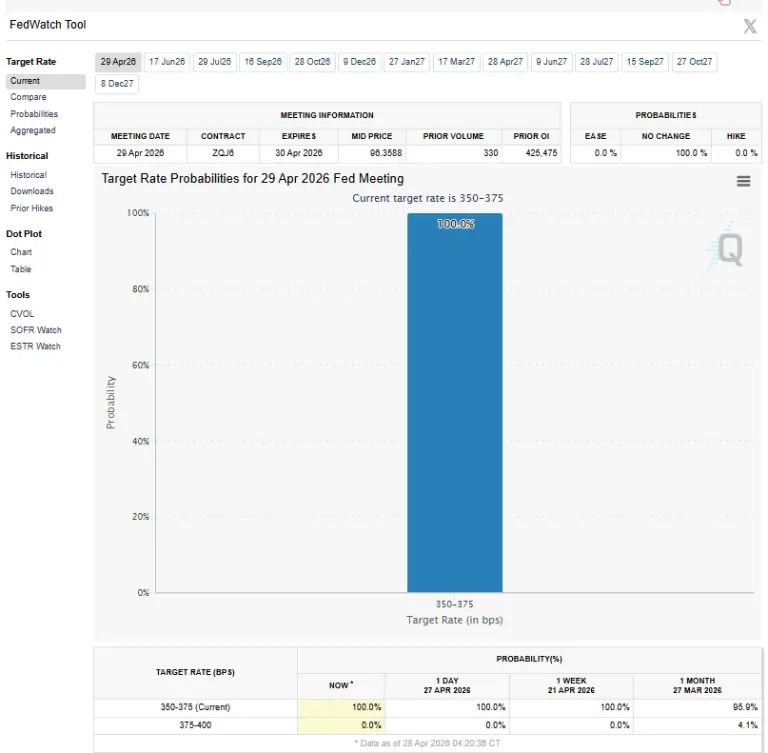 تقریباً هیچکس در والاستریت یا بازار ارزهای دیجیتال بهطور جدی انتظار کاهش نرخ بهره در ۲۹ آوریل را ندارد.