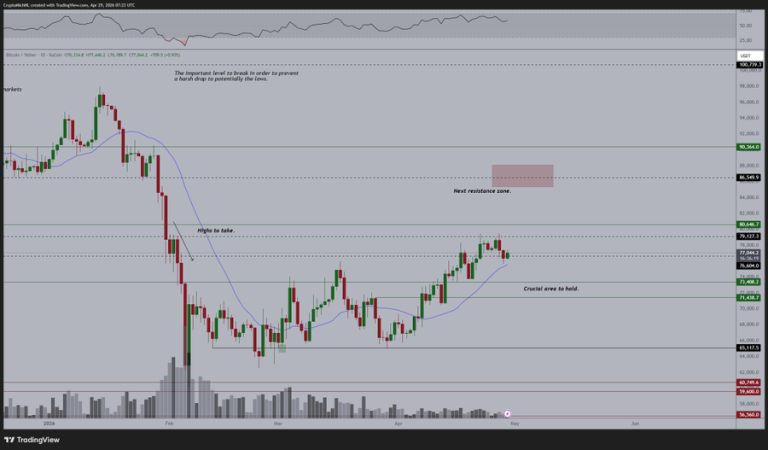 در سمت نزولی، محدوده ۷۱,۴۳۸ تا ۷۳,۴۰۸ دلار منطقه حمایتی کلیدی است که اگر قیمت عقبنشینی کند، باید حفظ شود. در نهایت، ون د پوپ همچنین سطح ۱۰۰,۷۳۹ دلار را بهعنوان هدف بزرگتر و بلندمدت معرفی کرده است.