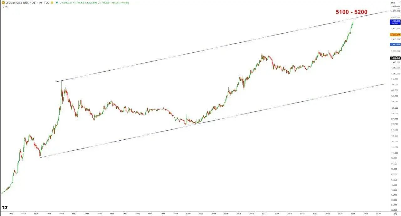از منظر تکنیکال بلندمدت، طلا همچنان درون یک کانال صعودی حرکت میکند. تحلیلگران محدوده ۵٬۱۰۰ تا ۵٬۲۰۰ دلار را یک ناحیه تصمیمگیری مهم میدانند؛ سطحی که هم از نظر تکنیکال و هم از نظر روانی اهمیت بالایی دارد.
