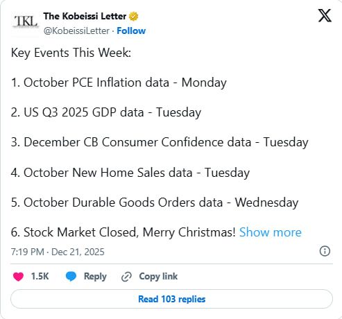 سهشنبه نوبت به گزارش تولید ناخالص داخلی آمریکا در سهماهه سوم میرسد. پیشبینیها از رشد اقتصادی حدود ۳ تا ۳.۵ درصد حکایت دارد؛ عددی کمتر از رشد ۳.۸ درصدی سهماهه قبل. دادههای فروش خانههای نوساز و سفارش کالاهای بادوام نیز در ادامه هفته منتشر میشوند، اما انتظار نمیرود شوک بزرگی به بازار وارد کنند.