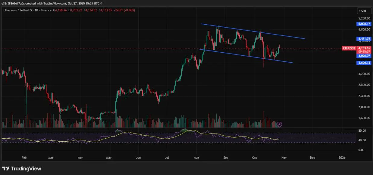 اتریوم هماکنون دومین ارز دیجیتال بزرگ از نظر ارزش بازار است و حوالی ۴۱۰۰ دلار معامله میشود. با اینکه از سقف ۴۹۰۰ دلار در تابستان کاهش یافته، طی یک سال گذشته بیش از ۲۳۰٪ رشد کرده است. این رشد نشاندهنده اعتماد توسعهدهندگان و سرمایهگذاران به شبکه اتریوم است، مخصوصاً در حوزههای دیفای، NFT و بلاکچین سازمانی.
