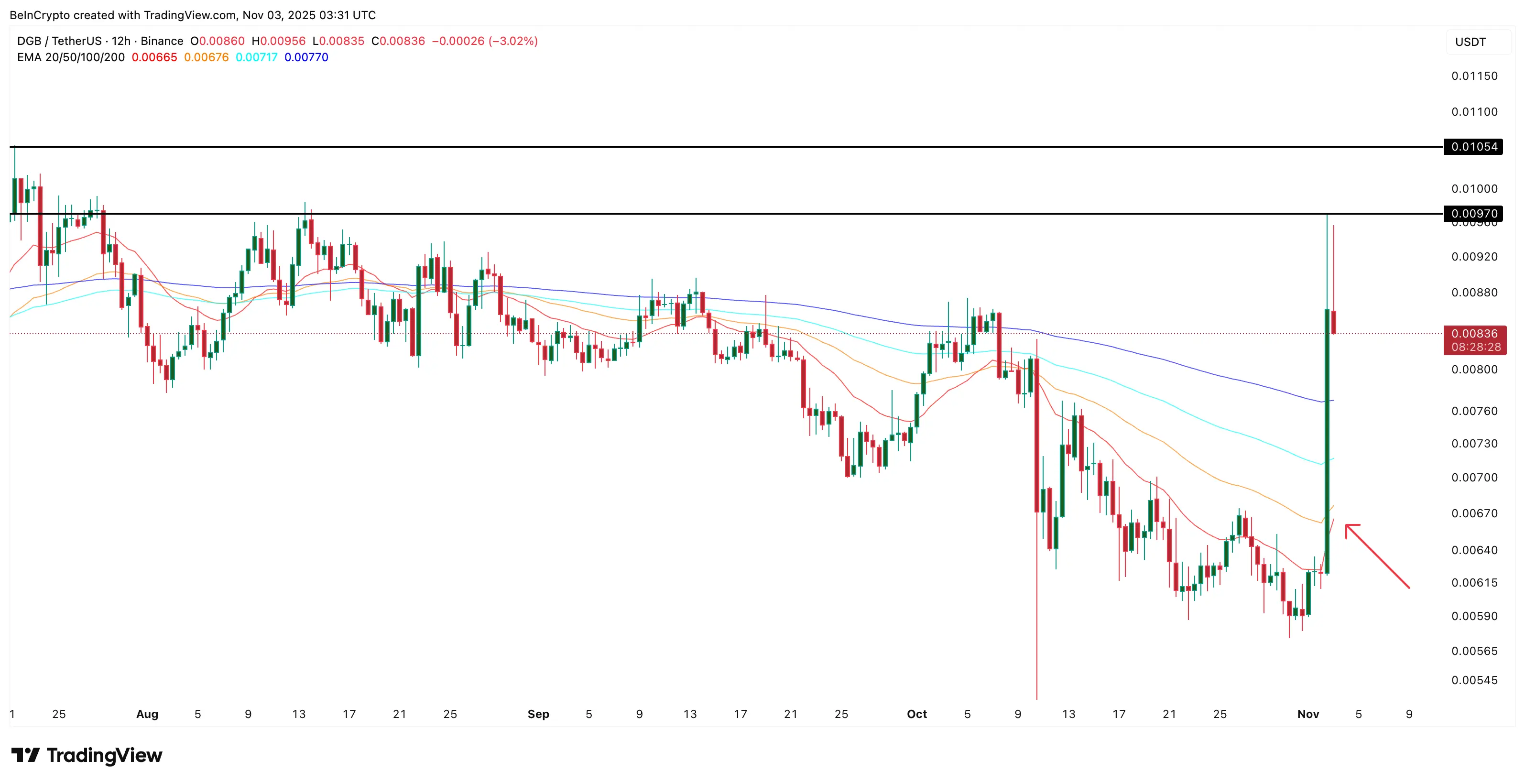 در چند ماه اخیر، قیمت دیجیبایت عمدتاً در حالت خنثی حرکت کرده و طی سه ماه گذشته تنها ۲.۳ درصد رشد داشته است. اما هفته جاری برای این رمزارز متفاوت بوده؛ زیرا تنها در ۲۴ ساعت گذشته بیش از ۳۶.۸ درصد افزایش قیمت را ثبت کرده و نشانههای روشنی از بازگشت قدرت را نشان میدهد.