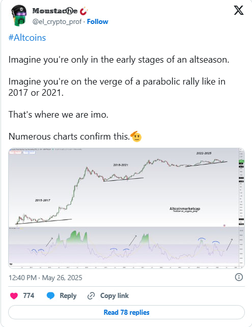 بر اساس دادههای تاریخی،آلت سیزن معمولاً از ماه ژوئن آغاز میشود و تا یک سال ادامه مییابد. اما این تحلیلگر هشدار میدهد که ۹۰ درصد آلتکوینها ممکن است تا سال ۲۰۲۶ تا ۹۹ درصد ریزش کنند.