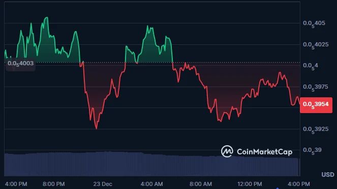 قیمت پپه پس از ناتوانی در تثبیت بالای محدوده 0.00000405 دلار، وارد یک فاز نزولی کوتاهمدت شد و با ثبت سقفها و کفهای پایینتر، نشانههایی از برتری فروشندگان را نشان داد. این افت که حدود ۳ درصد از سقف تا کف اخیر بوده، قیمت را به محدوده 0.00000395 دلار رسانده است.