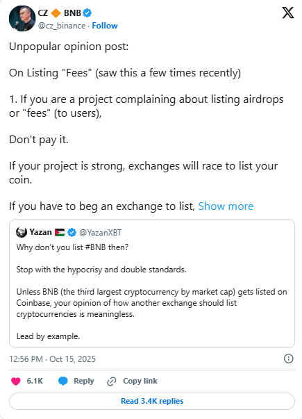 همچنین هی یی (He Yi)، یکی از بنیانگذاران بایننس، افزود که هزینههای مربوط به لیست شدن صرف فعالیتهای آموزشی و رقابتهای معاملاتی برای کاربران میشود و در صورت معتبر بودن پروژهها قابل بازگشت است.