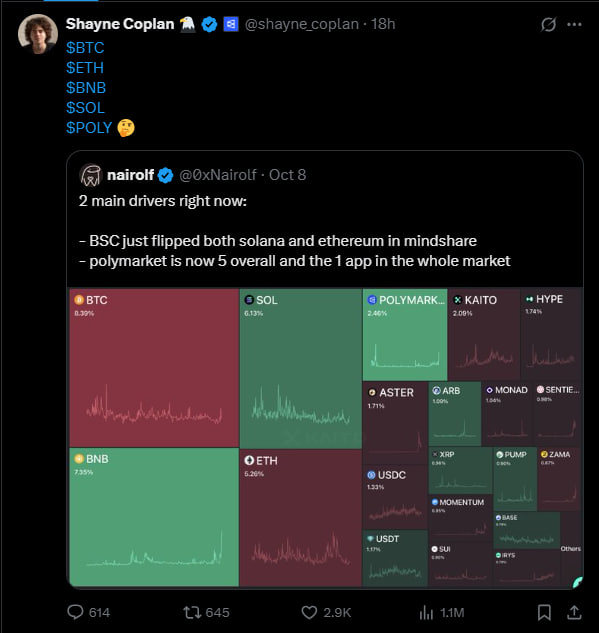 این گمانهزنیها پس از آن شدت گرفت که شِین کاپلن، بنیانگذار پولیمارکت، در پست مرموزی در شبکهی X (توییتر سابق) با حذف نام XRP از فهرست برترین رمزارزها و جایگزینی آن با نماد $POLY، کنجکاوی فعالان بازار را برانگیخت.