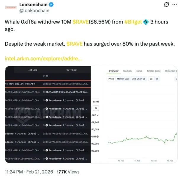 یک نهنگ رمزارز ۱۰ میلیون RAVE از صرافی Bitget برداشت کرد و توکن طی هفته گذشته بیش از ۸۴٪ جهش داشت. RaveDAO با ترکیب فرهنگ رِیو و بلاکچین توجه بازار را جلب کرده و سرمایهگذاران علاقهمند به خرید RAVE را به بررسی فرصت دعوت میکند.