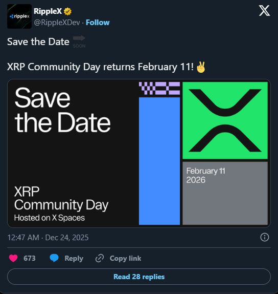 ریپل تاریخ ۱۱ فوریه ۲۰۲۶ را برای رویداد جامعه XRP اعلام کرد. پس از دستاوردهای بزرگ ۲۰۲۵، توجهها به نوآوریهای XRPL، پذیرش دیفای سازمانی و رشد اکوسیستم معطوف شده است. دارندگان و خریداران XRP فرصت برنامهریزی برای آینده رمزارز محبوب خود را دارند.