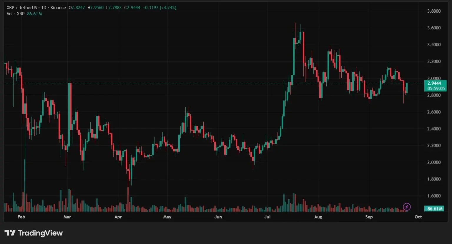 با وجود رشد شاخصهای مذکور و ثبت رکورد جدید، توکن بومی ریپل در آغاز هفته کاری با کاهش چشمگیری روبهرو شد. قیمت آن تا کف دو هفتهای ۲.۷۸ دلار سقوط کرد، سپس به ۲.۸۷ دلار برگشت و در زمان نگارش این گزارش روی ۲.۸۱ دلار قرار داشت.