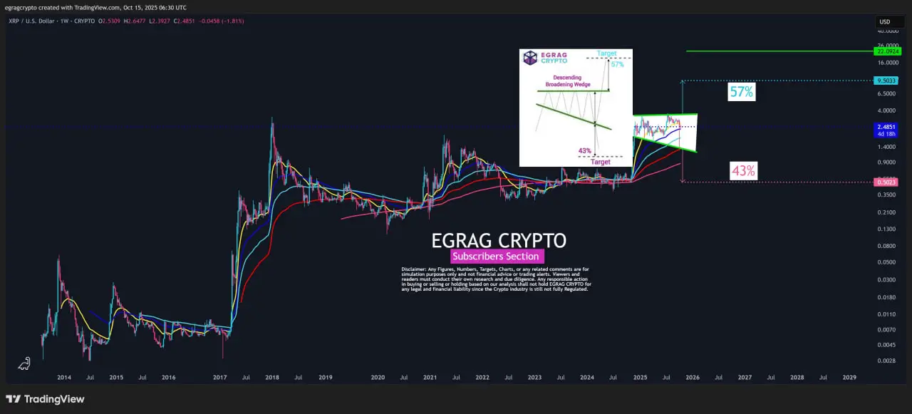 EGRAG همچنین با اشاره به چرخههای پیشین بازار گفت که در سال ۲۰۲۱، XRP از کف خود تا سقف ۱.۹۶ دلار رشدی حدود ۱۷۰۰ درصدی داشت — آن هم در شرایطی که پرونده SEC فشار زیادی بر قیمت وارد کرده بود.