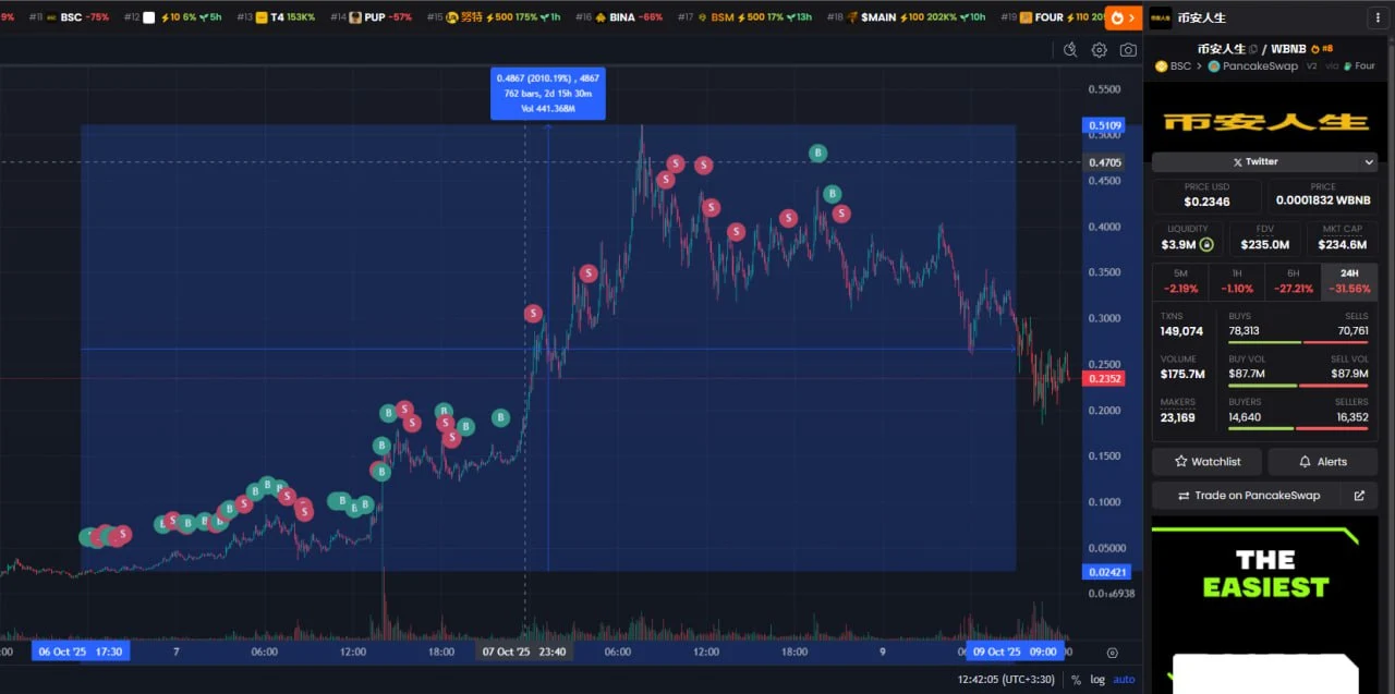 币安人生 طی ۷۲ ساعت حدود ۲۰۱۰٪ جهش قیمتی داشته است.