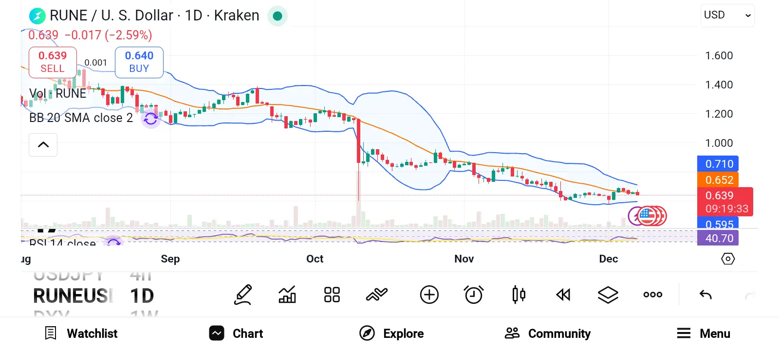 این موقعیت یک روند صعودی فعال را نشان میدهد که میتواند RUNE را به سمت ۰.۷۱۷ یا حتی ۰.۷۶۵ دلار هدایت کند. عبور از مقاومت ۰.۶۸۷ میتواند نشانهای از مومنتوم قویتر باشد. البته ضعف احساسات ممکن است قیمت را به سمت ۰.۶۴۴ کاهش دهد، بنابراین فشار خرید اهمیت زیادی دارد.