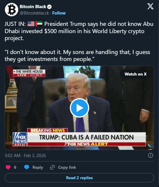 دونالد ترامپ در پاسخ به خبرنگاران، هرگونه اطلاع از این معامله چندصد میلیون دلاری را رد کرد و اعلام کرد که مدیریت این پروژه بر عهده فرزندانش است. او تاکید کرد که خانوادهاش از سرمایهگذاران مختلف جذب سرمایه میکنند و خودش نقشی مستقیم در این روند ندارد.