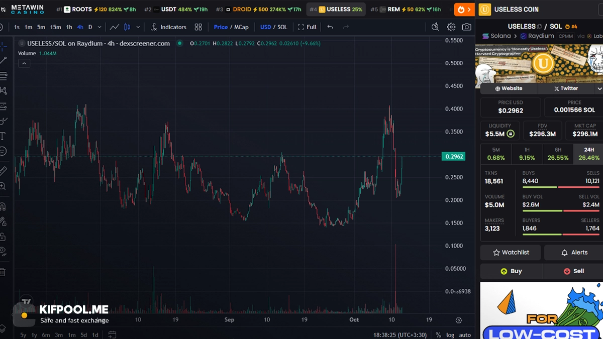 در زمان نگارش این خبر، قیمت توکن USELESS حدود ۰.۲۹ دلار است. ارزش بازار آن به ۲۹۵ میلیون دلار رسیده و نقدینگی در استخرهای Raydium حدود ۵.۴ میلیون دلار گزارش شده است.