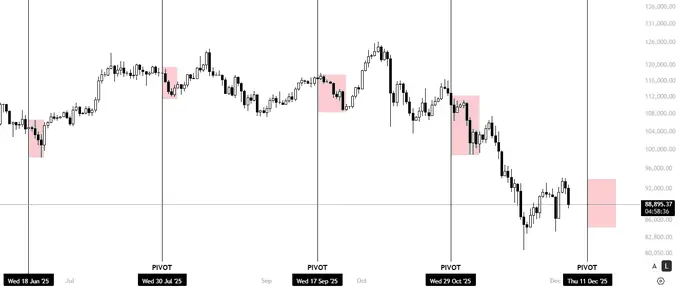 پس از آخرین تغییر سیاست، بیتکوین ابتدا تا بالای ۹۵ هزار دلار صعود کرد، اما سپس حدود ۵ درصد افت داشت و اکنون در نزدیکی ۹۰ هزار دلار معامله میشود. او باور دارد که تاریخ ۱۰ تا ۱۱ دسامبر میتواند بار دیگر زمانی مهم باشد و احتمال دارد بیتکوین مشابه گذشته یک افت ۵ تا ۷ درصدی دیگر را تجربه کند.