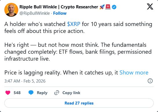 Ripplebull Winkle، یکی از شناختهشدهترین حامیان ریپل که بیش از ۱۰ سال ریپل نگهداری کرده، در شبکه اجتماعی ایکس سکوتش را شکست و دیدگاه متفاوتی ارائه داد. او معتقد است رفتار قیمتی فعلی ریپل با شرایط بنیادی آن همراستا نیست و بازار در حال نادیده گرفتن تغییرات مهمی است که پشت صحنه رخ دادهاند.