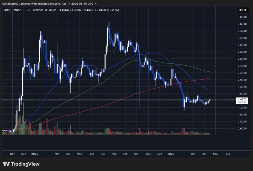 از نظر تکنیکال، XRP هنوز در یک فاز اصلاحی قرار دارد. پس از سقوط از سقف ۳.۵۰ دلار در سال ۲۰۲۵، قیمت وارد روند نزولی شد و حتی تا محدوده ۱.۲۰ دلار کاهش یافت.