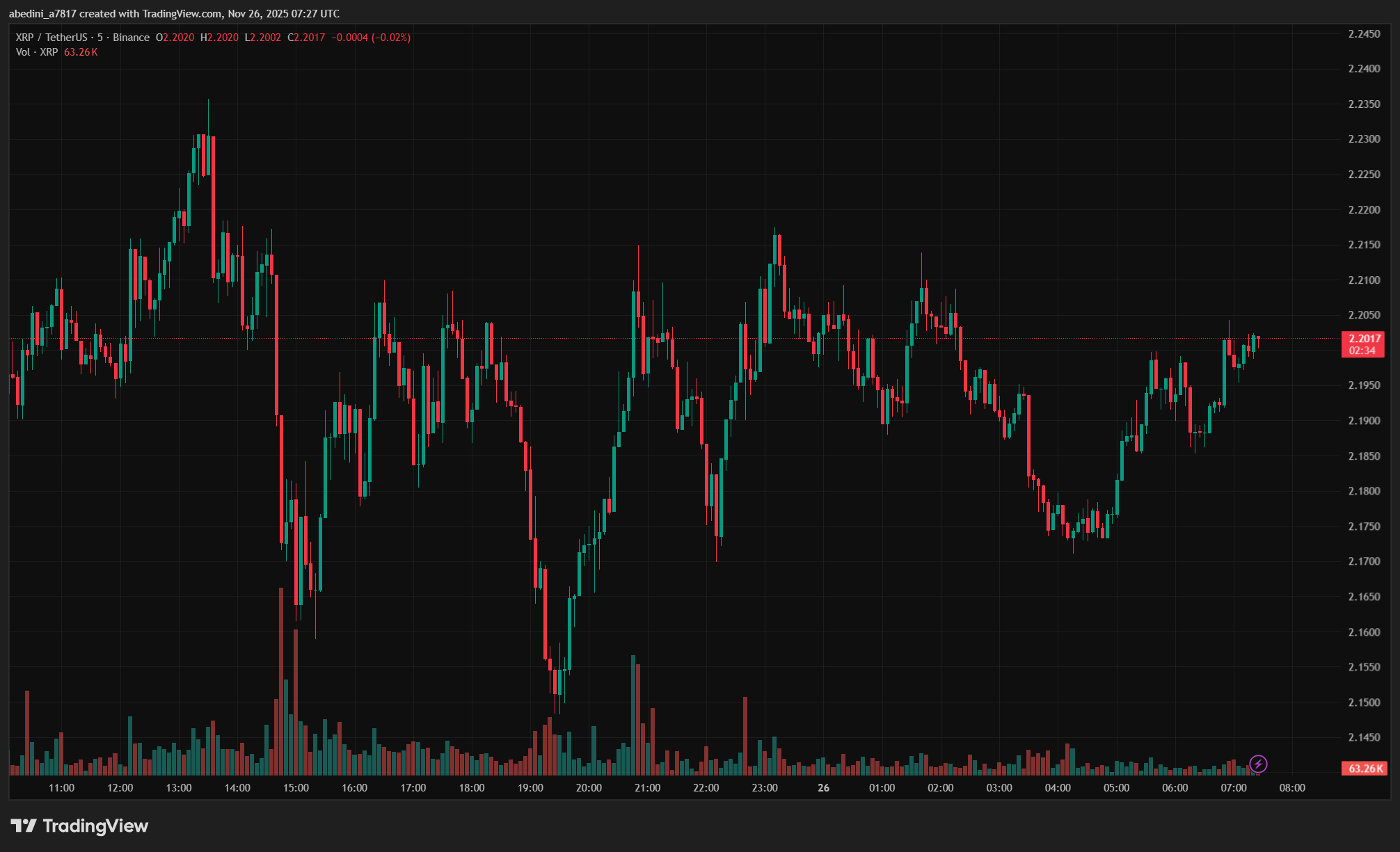 ارز دیجیتال ریپل (XRP) پس از کاهش حدود ۱۰ درصدی طی هفته گذشته، اکنون نزدیک به ۲.۰۶ دلار معامله میشود. این دارایی در ۲۱ نوامبر به کف ۱.۸۳ دلار رسید و پس از نوسان در محدوده ۱.۹۶ دلار طی آخر هفته، دوباره توانست به بالای ۲ دلار بازگردد.