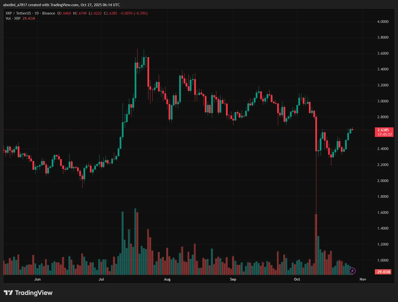 با وجود این رشد کوتاهمدت، ریپل همچنان در چارچوب یک ساختار نزولی گستردهتر قرار دارد و در نمودار روزانه همچنان الگوی «کفها و سقفهای پایینتر» را تشکیل میدهد. تنها در صورتی که شکست پایدار بالای ۲.۷۰ دلار همراه با تثبیت قیمت بالاتر از آن رخ دهد، میتوان نشانههایی از تغییر روند عمیقتر را مشاهده کرد.